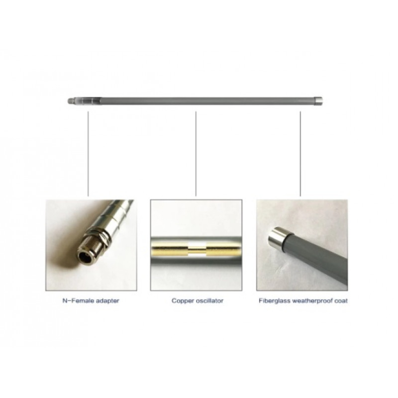 Mobilna zunanja antena omni Lora Helium teoretičnega pridobitka 12-15dB z RF konektorskim končnikom N FeMale velikosti 150cm, možnost pritrditve na drog z kovinskim paskom