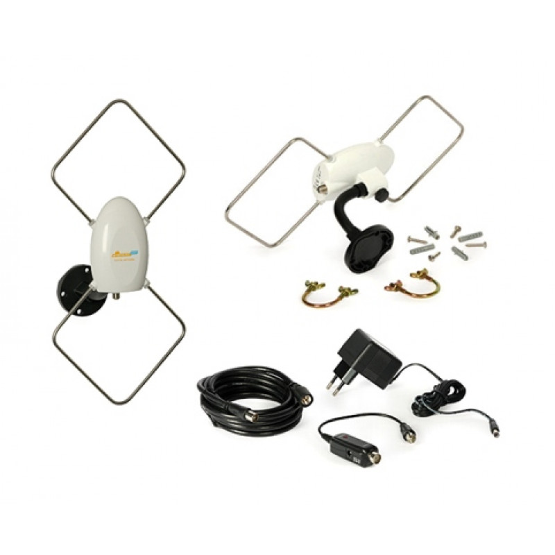 Majhna zunanja VHF/UHF Quad DVB-T antena proizvajalca Signal H-5000, z nosilcem, kablom in ojačevalnikom.