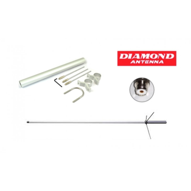 Diamond Radio VHF bazna omni antena japonskega proizvajalca z montažnim nosilcem BC100 frekvenčnega področja 134-174MHz pridobitek do 4.5dBi, velikost 1.7m moči do 200W z montažnim PL UHF konektorjem