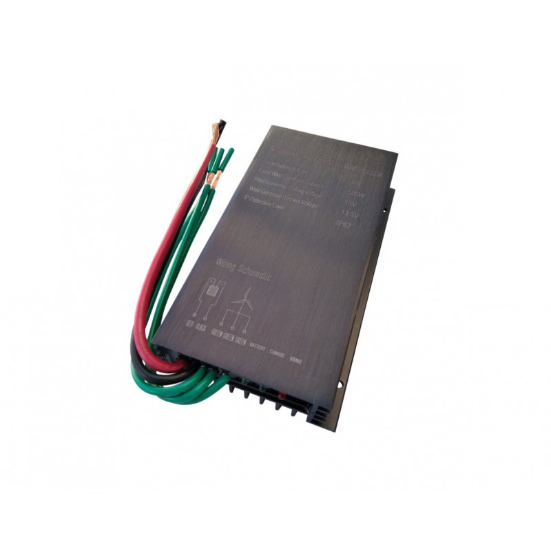 Regulator polnjenja FW05-12 je namenjen vetrni turbini 4S-500M3-3 12V. Zelene žice se povežejo z veterno turbino, vrstni red ni pomemben saj gre za izmenično napajanje, baterijski žici se povežejo z baterijo. Dimenzije regulatorja 170x100x30mm tip zaščite za zunanjo rabo IP67, samo spajanje kablov je potrebno prilagoditi tipu rabe.