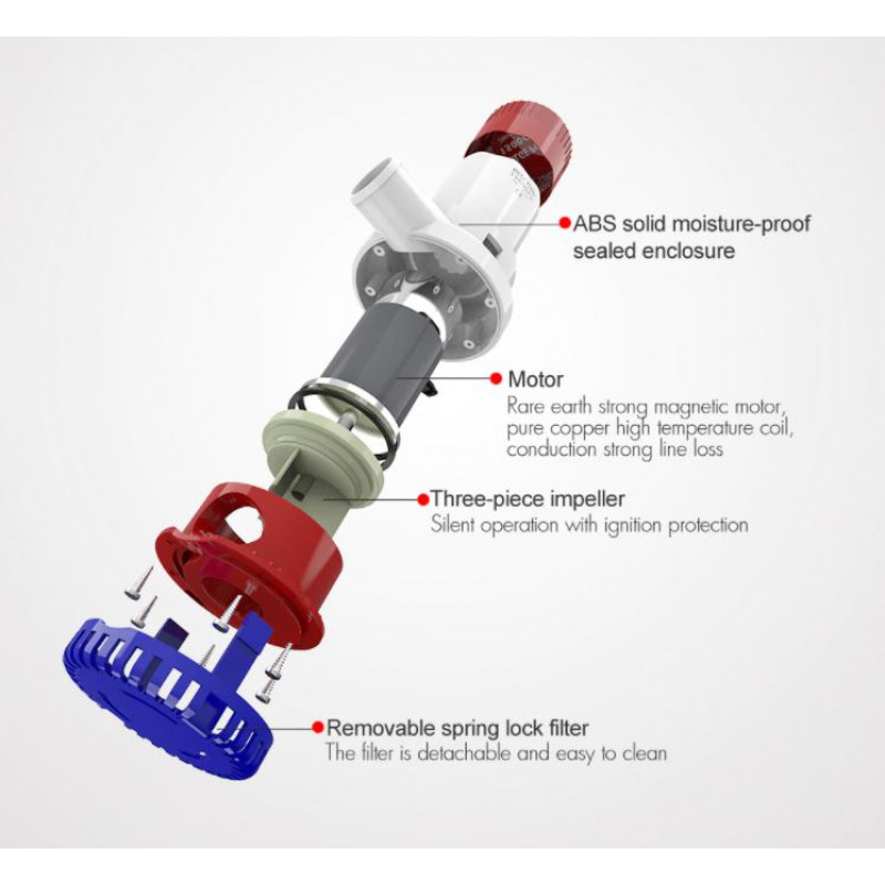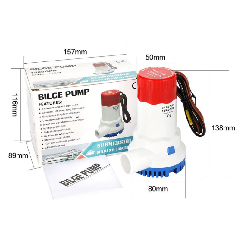 SHUR črpalka umazane vode Bilge 12V za prečrpavanje do 70-80l/min 1500G, poraba nekje 70W za Sistem 12V, 1m napajalnega kabla, max višina do 2-3m