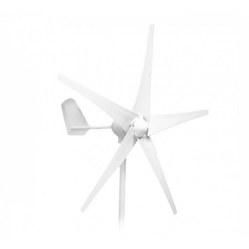 Veterna turbina NE400m5 sistema DC24V moči 400W ohišje iz aluminijeve zlitine z dvema vrtljivima ležajemaaaaa, majhva zagonska hitrost vetra 2.5m/s, 5. veternice z strukturo za največje izkoristke vetra, premer veternic 1.35m, magnetna zavora z max obremenitvijo vetra do 45m/s, montažni drog ni zajet v ceno.