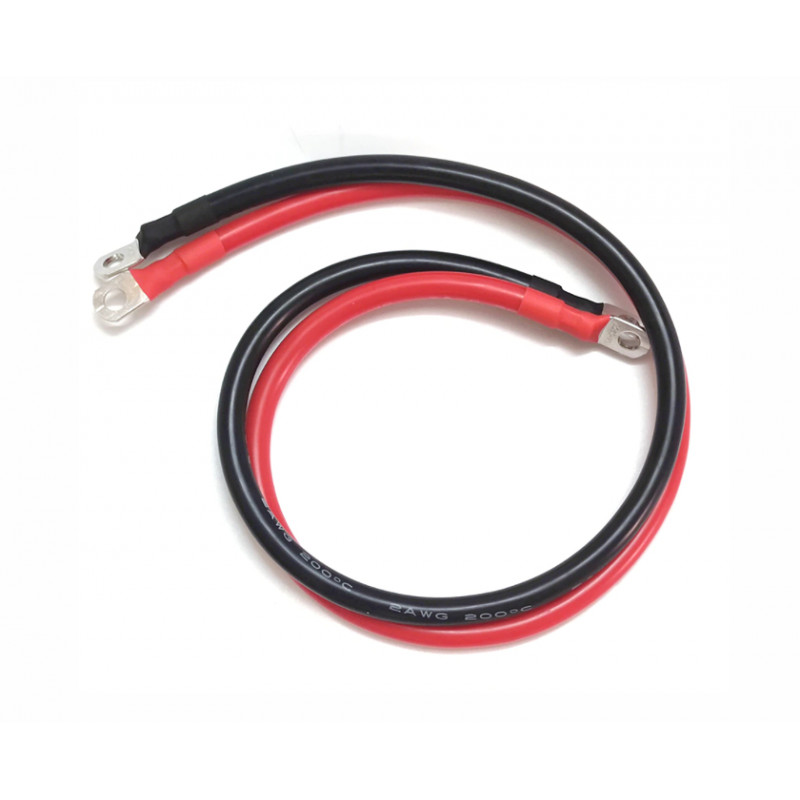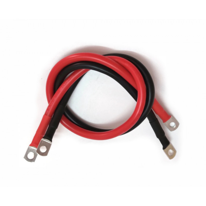 Priključni podaljšek zaključeni finožični Cu klemasti kabli 2x 1M 25mm2 z kabelskima čevljema fi8 ali fi10. Primerni za priključitev baterij in drugih solarnih delov