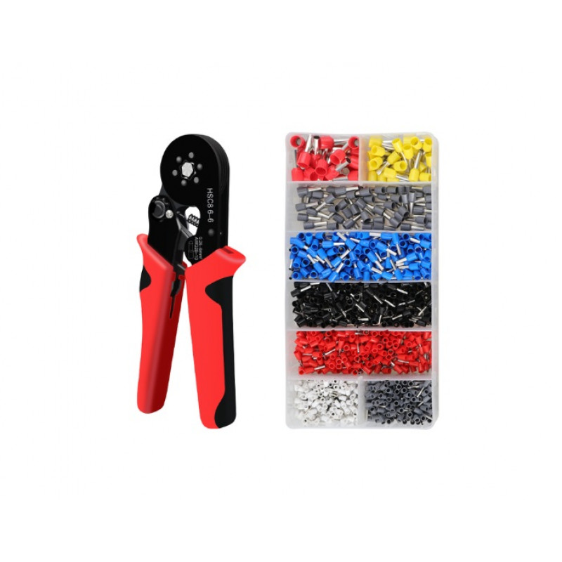 Krimp klešče HSC8 6-6 za krimpanje s šest kotnikom tulcev, končni kabelski tulci od 0.25mm do 6mm2 tipa AWG 28-10. Komplet vsebuje paket tulcev 1000.kos