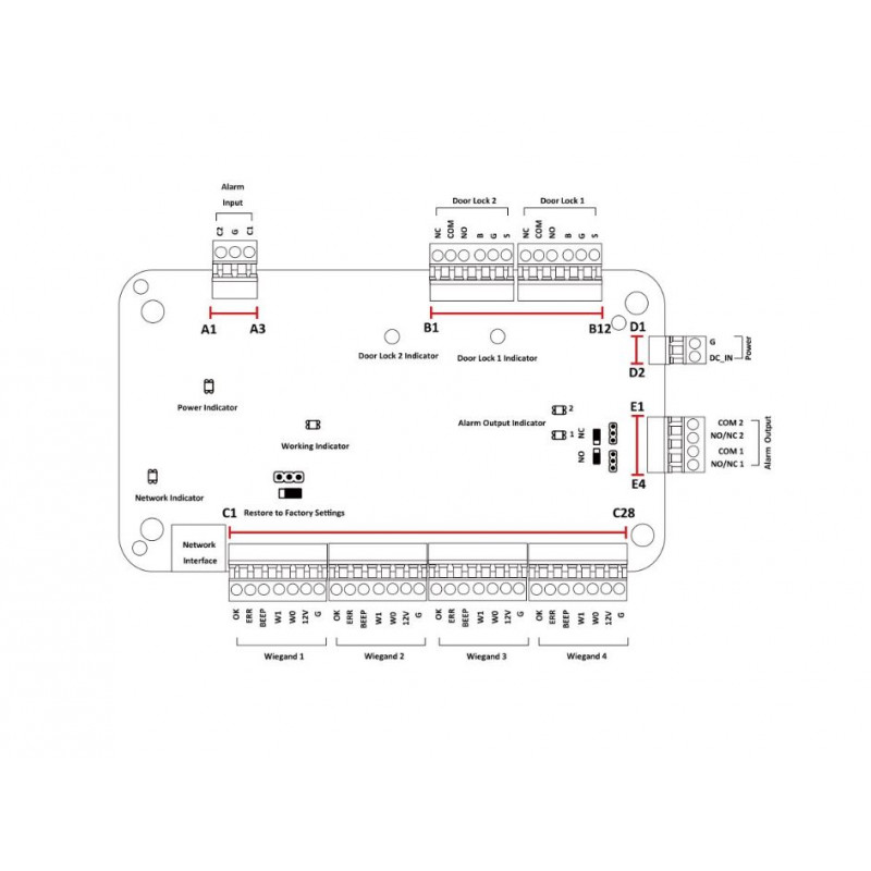 - 2x gumb za izhod + 2x vratni kontakt + 2x vnos ohišja