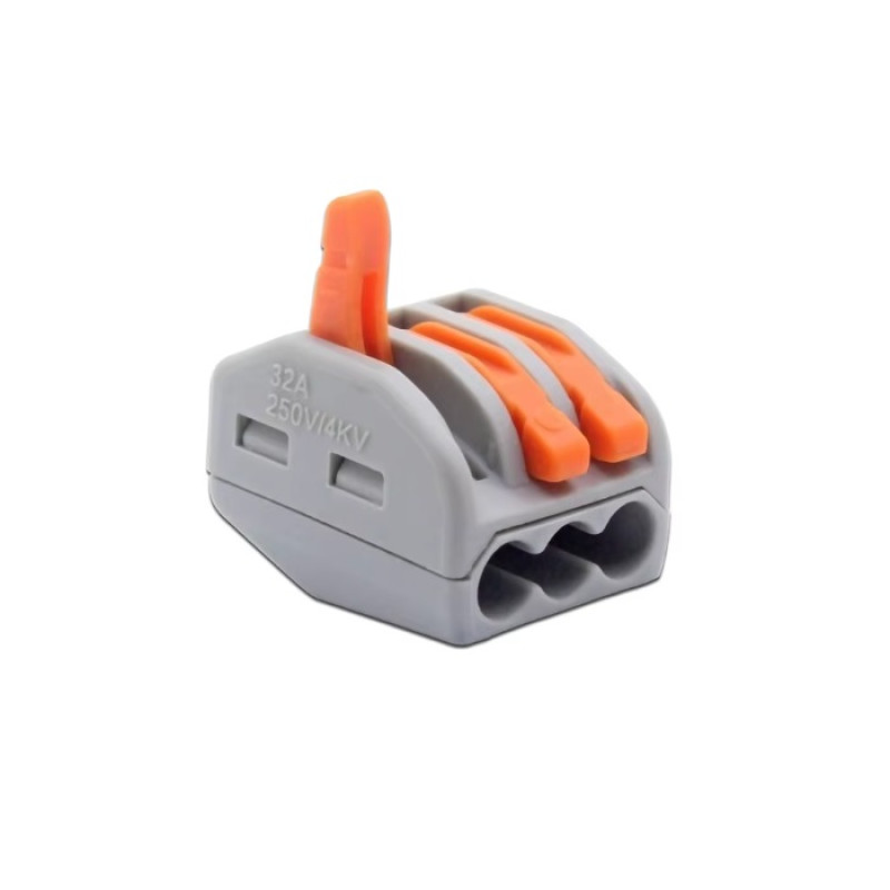 Hitre univerzalne zanesljive spojke za izvedbo električnega ožičenja ali elektronike. Konektorski terminali imajo 3-Pine, za kable standard AWG 28-12, ki so zaščitene za ožičenje napetosti 0-400V oz tokovne obremenitve 0-32A. Komplet spojk je za ceno paketa P3 10.komadov