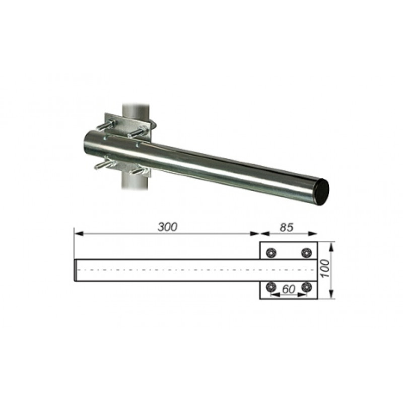 Zidni stranski kotni antenski nosilec I30 premer droga ¤38 v pocinkani izvedbi, montaža z štirimi vijaki ali priloženimi objemkami za drog M8
