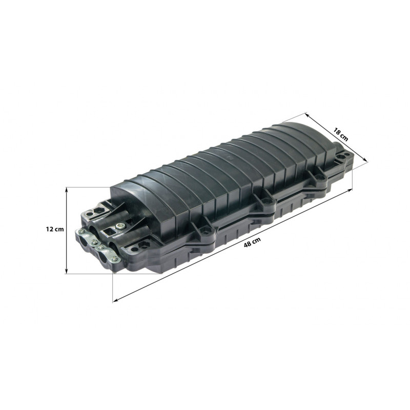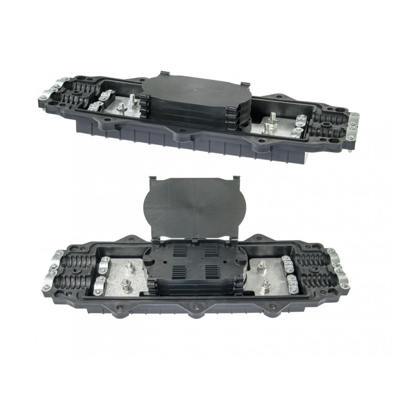 Opton Horizontalna spojka  2In 2Out 48F je vodoravno zapiralo za spajanje, opremljeno s 4 vhodno/izhodnimi vrati (2 vhoda in 2 izhoda). Kasete spoja: 48F ali 4x12.