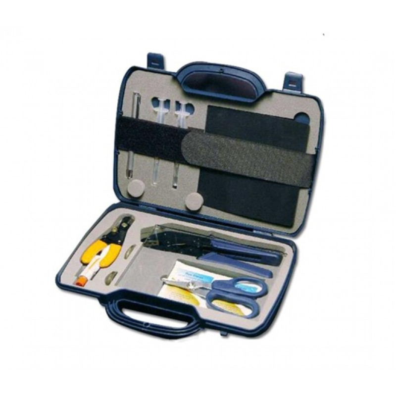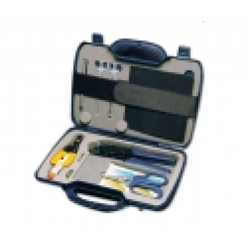 Osnovno orodje Lynx Cs, brizgalka z iglami, odstranjevana klešča, hitro sušeče epoksi lepilo, čistilni alkohol, polirne plošče za ST in SC priključke, pivnik, škarje za kevlar iz steklenih vlaken, prac. podložka, gumirne podpožke, klešče, komplet diamantnih brusilnih papirjev - 6/1/0,05 um