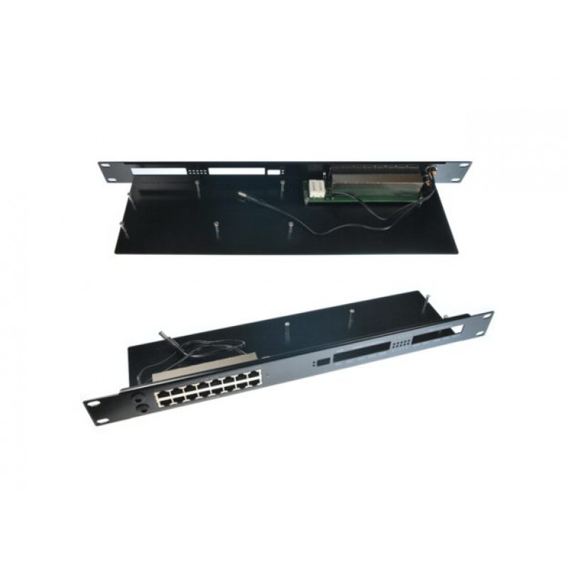 Mikrotik rack ohišje 19" za RB2011LS raster rack 1U z vključenim 8x PoE stikalom 10-28V max tok do 11A, napajalni jack DC 2.1/5.5mm, montažni nosilci RouterBoard