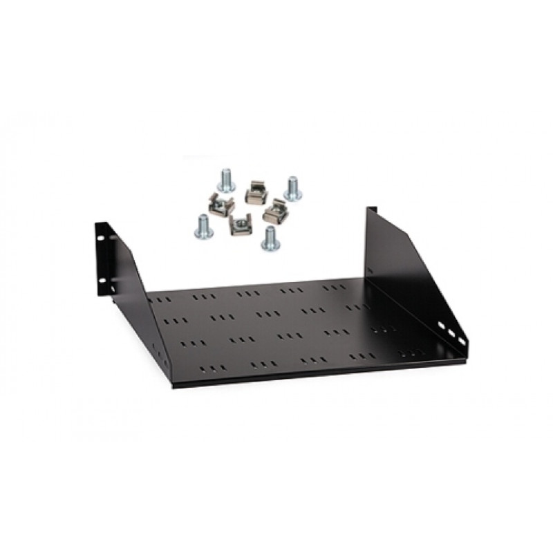 Signal kabinet RACK polica 2U za omare tipa 19", globina 450mm črne barve z priloženimi vijaku in maticami