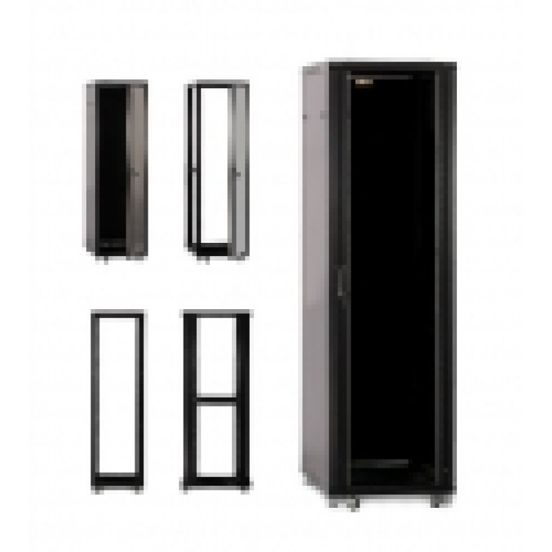 Signal komunikacijska omrežna omara tipa 42U 600x800mm, lep moderen črn dizajn, steklene vratice, visoka 205cm, ključavnica z dvema ključoma, hladilni in kablski utori