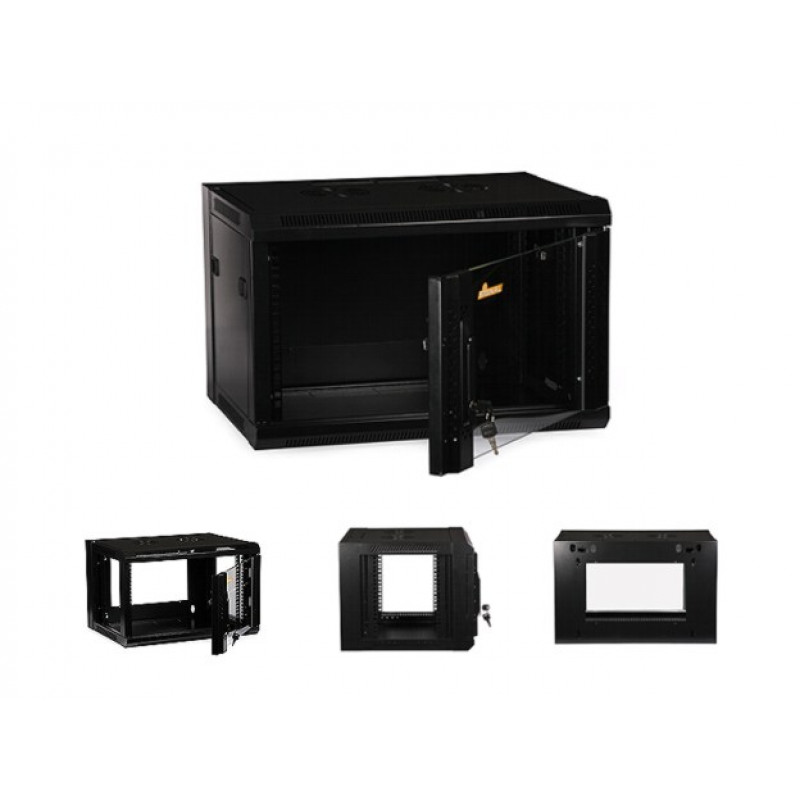 Signal komunikacijska omrežna omara tipa 6U 600mm, lep moderen črn dizajn, steklene vratice, ključavnica z dvema ključoma, hladilni in kablski utori