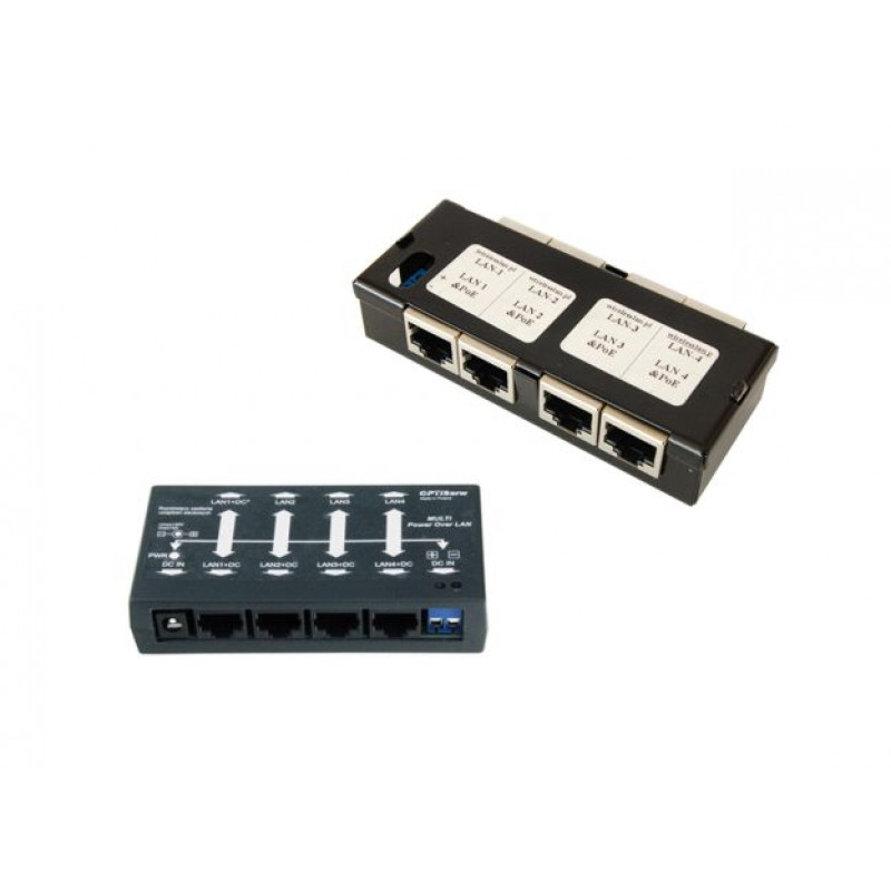 Multi 4xPoE injektor za omrežno kablsko napajanje PoE podprtik omrežnih komponent 9-48V, maksimalni tok na port do 1.2A, tip omrežka 10/100Mbps