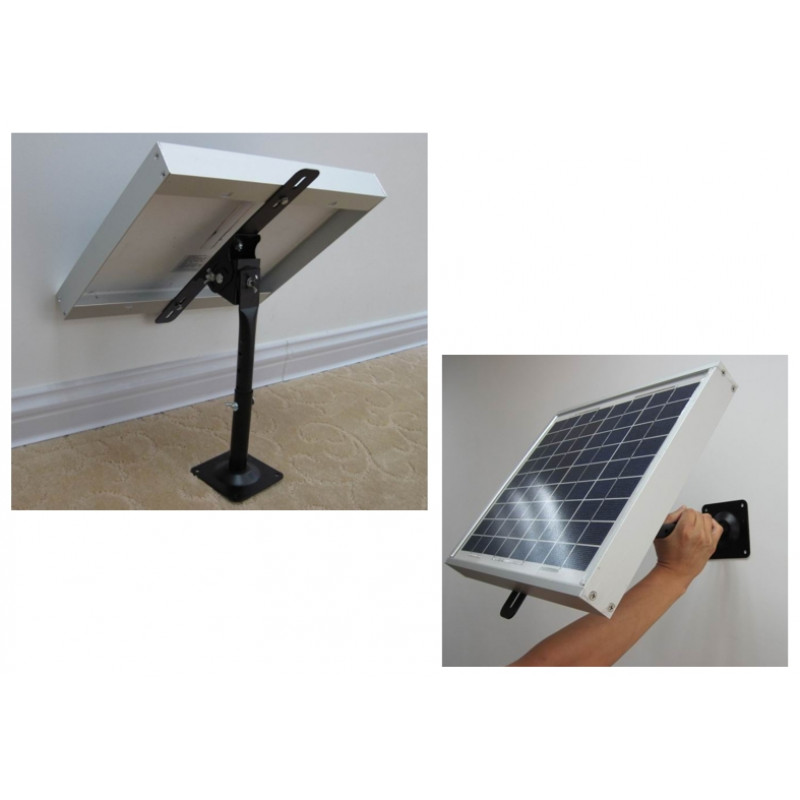 Nastavljiv montažni solarni nosilec ZJ za manjše solarne panele 10-50W, montažna roka z tremi distančnimi letvami za različne velikosti solarnih panelov od 220mm do 420mm, montažni steber je le eden, komplet vsebuje tudi montažne zidne vijake.