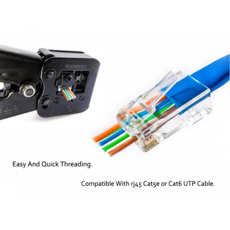 Omrežni skozni quick konektorji 10x za kabel kategorije UTP Cat.5E ali Cat6 8-PIN RJ45 omrežni plastičen, pozlaščeni kontakti do 1.0mm