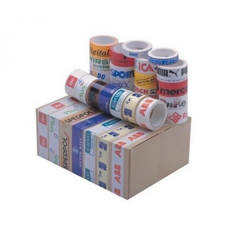 Promocijski PP Hot-Melt pakirni lepilni trak z promocijskim logotipom. Dvobarvni tisk na beli oz clear iz visoko kakovostnega Poly-propilenske folije, debelina filma 28.mic, skupne debeline 49.mic, izdelava klišeja, 360.rolic