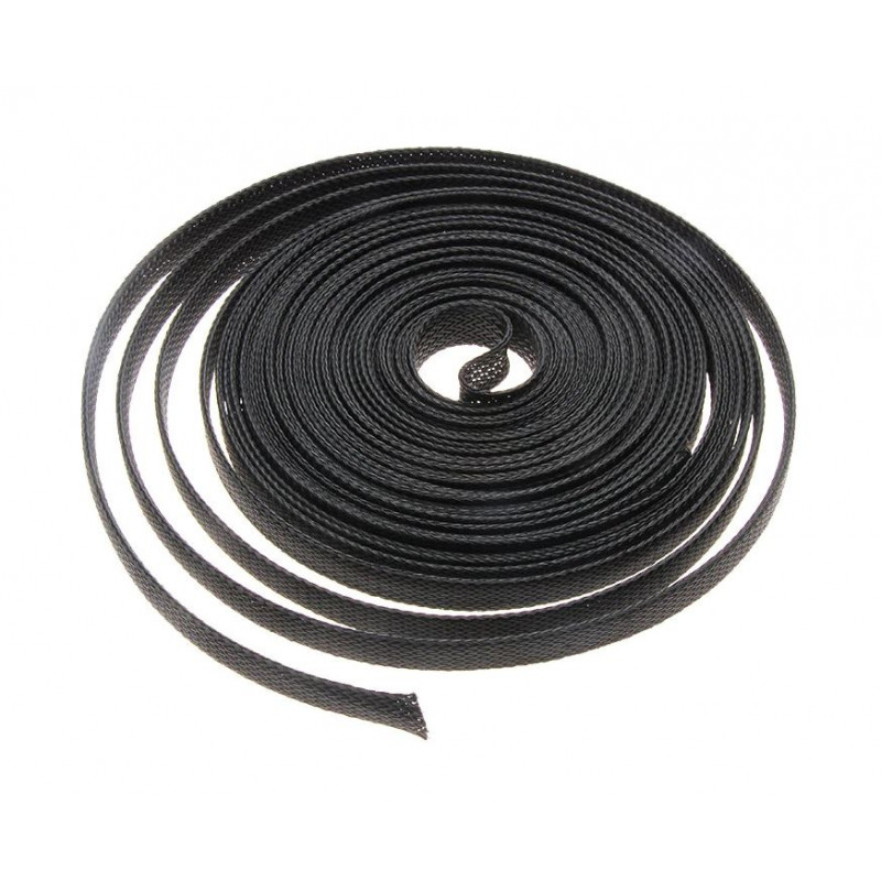 Kabelska PET zaščitna cenva pletenica za izoliranje in zaščito prostih kablov 8mm, ognjevarna pletenica UL94V-2 žčiti kablovje do 150°C ima možnost razširjenja do 150%, tališče materiala je pri +220°C