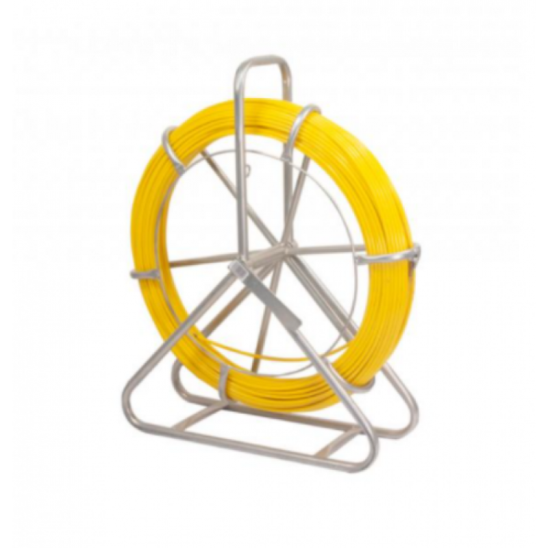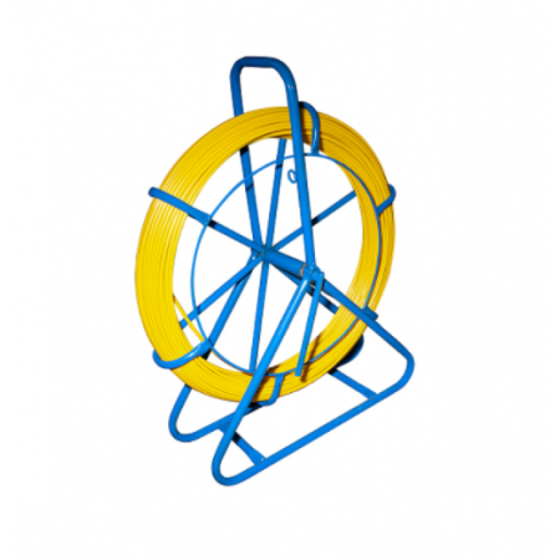 Forpšan z osnovnim nizkocenovnim barvanim okvirjem. Industrijska inštalacijska predvlečna vrv z gumirano zdrsno izolacijo fi 5.5mm - osnovni foršpan za daljše industrijske trase do 130m z minimalno močjo uvlečenja kabla, PE-premaz za zaščito in boljši zdrs po kanalih. Vlakno je opremljeno s konico z očesom za pritrditev kablov, boben ima utor za priročno usmerjanje vlaken