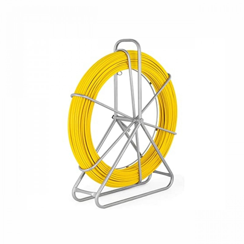 Foršpan z nizkocenovnim barvanim okvirjem. Industrijska inštalacijska predvlečna vrv z gumirano zdrsno izolacijo fi 8mm - foršpan za daljše industrijske trase 100m, PE-premaz za zaščito in boljši zdrs po kanalih. Vlakno je opremljeno s konico z očesom za pritrditev kablov, boben ima utor za priročno usmerjanje vlaken. Majhna izvedba za v avto višine do 80cm brez koles.