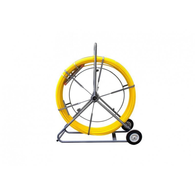 Profi HiQuality izdelan pocinkan okvir s kolesi iz močnih cevi ter boben iz polnih šibk z dograjeno zavoro višine 90cm. Industrijska inštalacijska predvlečna vrv z gumirano zdrsno izolacijo fi 8mm PE-premaz za zaščito in boljši zdrs po kanalih.  Vlakno je opremljeno s konico z očesom za pritrditev kablov, boben ima dva ušesa za priročno usmerjanje vlaken v obe smeri ter ter zaključni uro za zaključek vrvi.