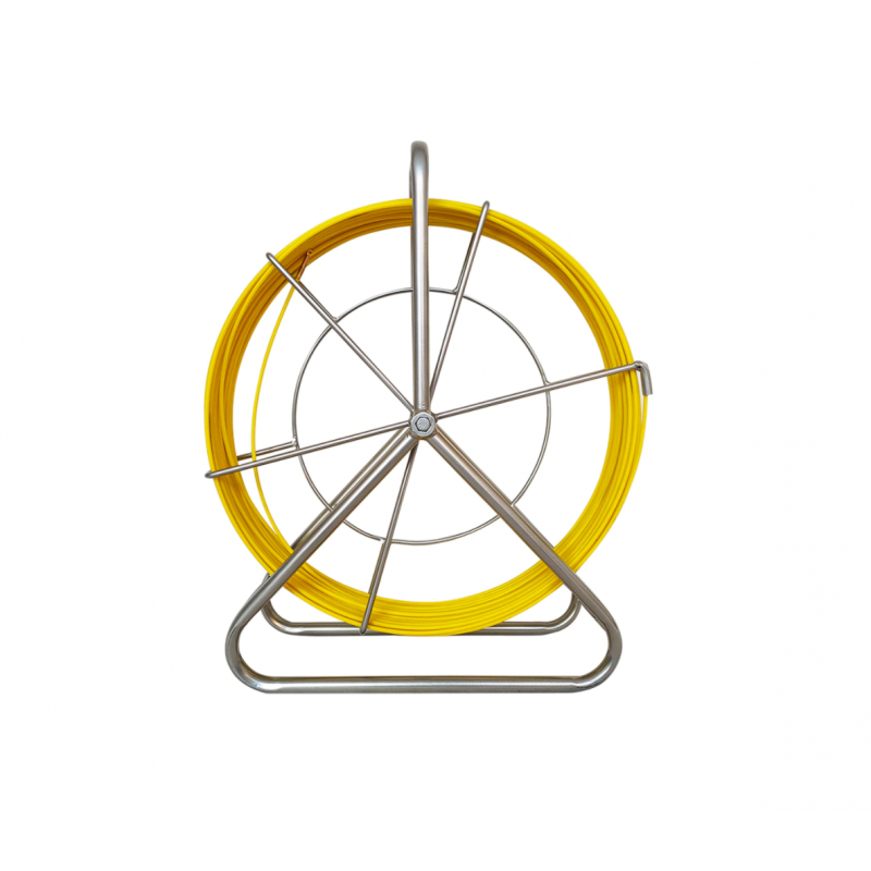 Profi HiQuality izdelan pocinkan okvir iz močnih cevi ter boben iz polnih šibk z dograjeno zavoro višine 80cm. Industrijska inštalacijska predvlečna vrv z gumirano zdrsno izolacijo fi 6mm PE-premaz za zaščito in boljši zdrs po kanalih. Vlakno je opremljeno s konico z očesom za pritrditev kablov, boben ima dva ušesa za priročno usmerjanje vlaken v obe smeri ter ter zaključni uro za zaključek vrvi.
