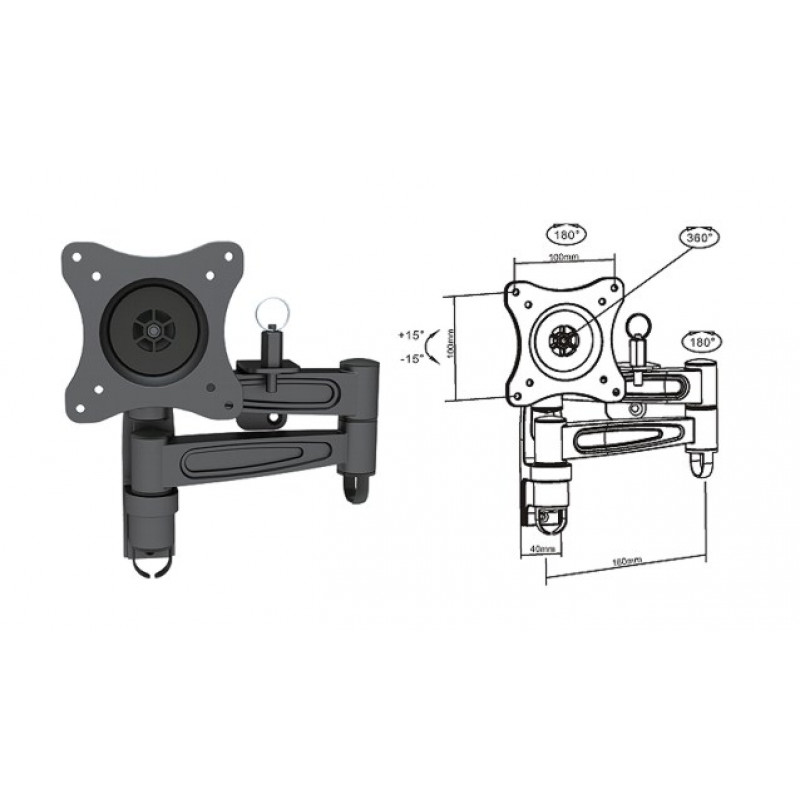 Gibljivi LCD stenski zidni monitor ali TV nosilce 141L 13-27", naklon 15°, nastavitev kota do 180°, nosilnost do 15kg, enostavna montaža po priloženih navodilih