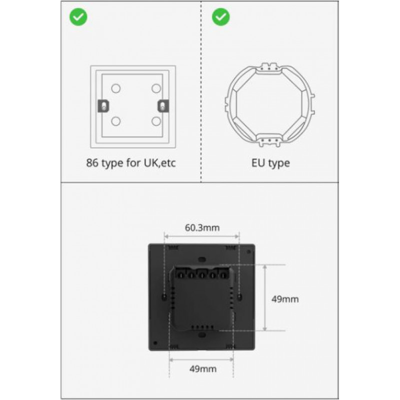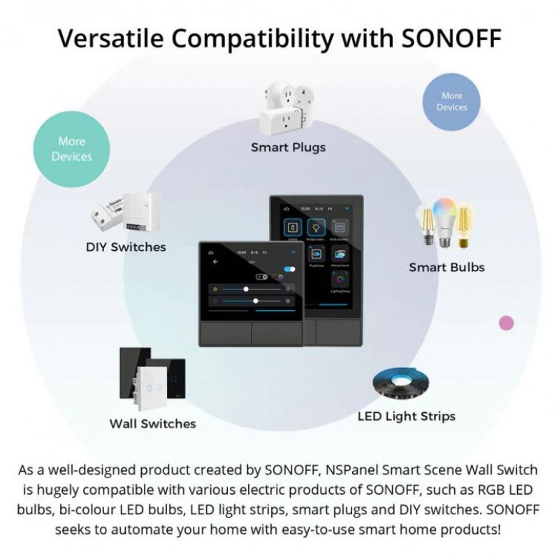 Tako močna plošča, kako jo nadzorovati? Stensko stikalo Smart Scene Smart Scene SONOFF lahko upravljate na tri načine: uporabite dvokanalna stikala ali zaslon na dotik na bližnji razdalji, uporabite APP za nadzor, ko ste na dolgi razdalji, glasovni nadzor poskrbi, da bodo vaše roke proste.