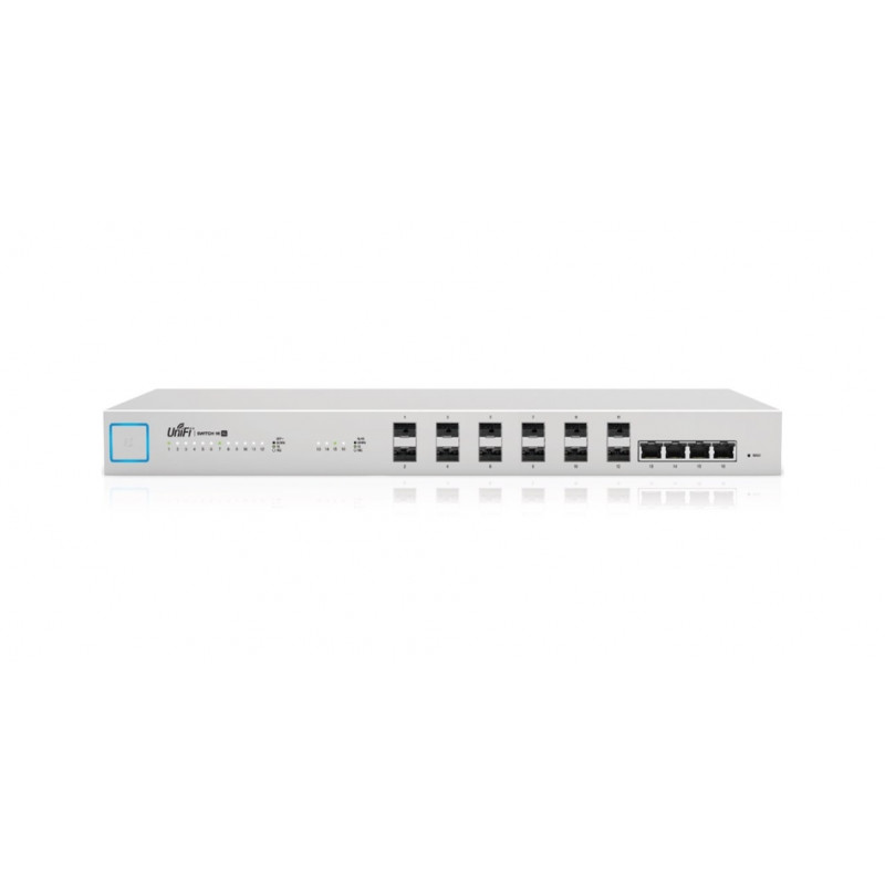 UniFiSwitch US-XG-16 je visokozmogljivo optično stikalo, primerno za izgradnjo omrežja 10Gbit. UniFiSwitch US-16-XG vsebuje 4x 10G Ethernet in 12x SFP + vrata s skupno prepustnostjo 320Gbps . Vsa ethernetna in optična vrata podpirajo hitrosti 10G in 1G.