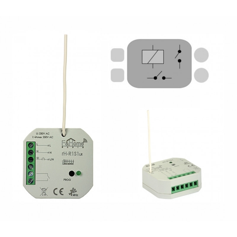 Modul rH-R1S1 LR je kombiniran enosmerni rele z oddajnikom in kontaktnim vhodom. Modul pošilja informacije o odpiranju in zapiranju kontakta v sistem in nadzira rele, ki lahko vklopi katerokoli električno vezje. Komunikacija s strežnikom poteka prek radia. Modul ima fizični vhod za povezavo enega monostabilnega potencialnega prostega kontakta in enega relejnega stikala. Obremenitev je lahko uporovna, induktivna ali kapacitivna v obeh AC in DC tokokrogih. RH-R1S1 LR je še posebej primeren za krmiljenje prezračevalnega ventilatorja, osvetlitve in aktiviranja zidnih vtičnic. Območje modula je veliko daljše (do 300 m) kot standardne izvedbe (rH-R1S1).