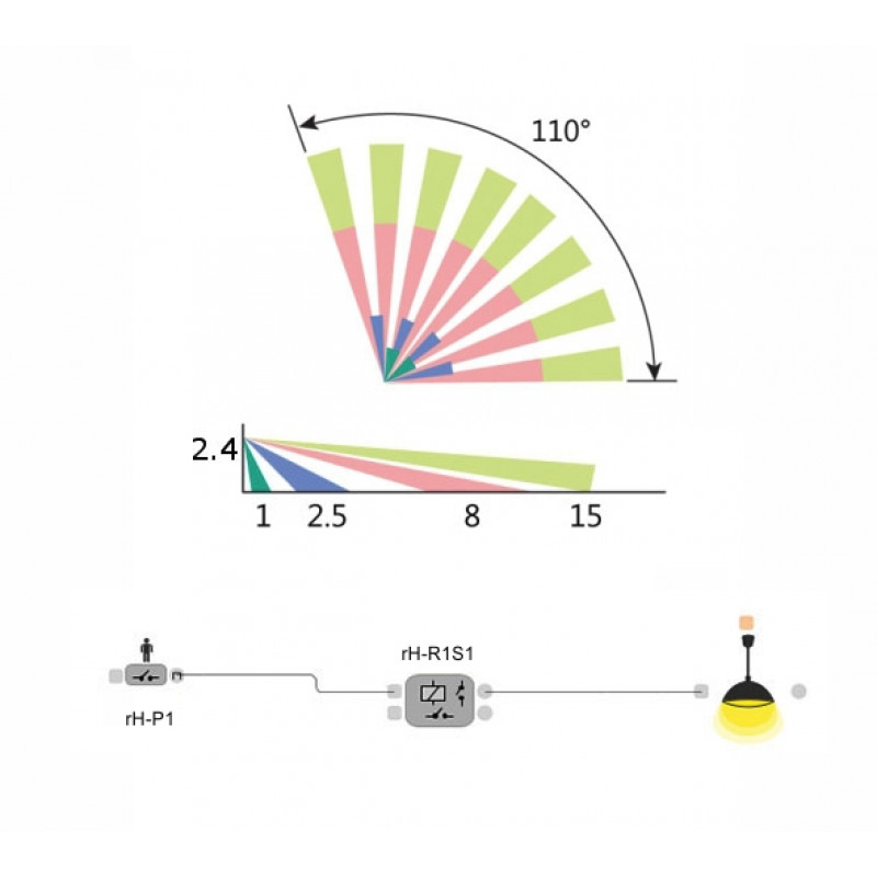 PIR Senzor rH-P1 je nizkotonski baterijski, pasivni detektor gibanja. Odkriva prisotnost ljudi s spremembami infrardečega sevanja in prenaša informacije o vsaki spremembi v sistemu. Komunikacija s strežnikom poteka po radiu. Modul je še posebej primeren za nadzor osvetlitve ventilatorja kot elementa vgrajenega alarmnega sistema.