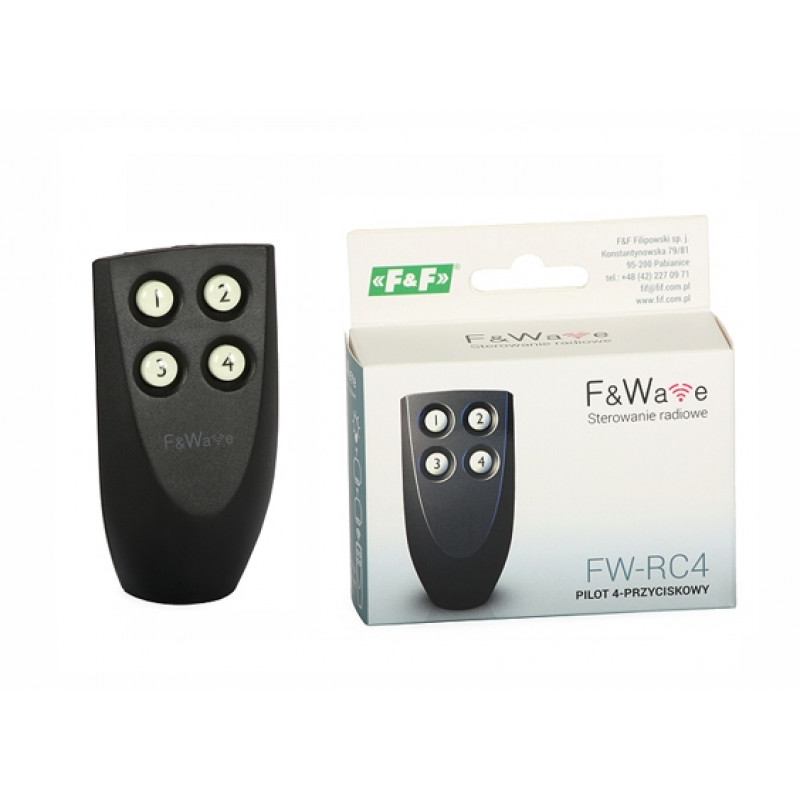 Daljinski upravljalniki za brezžične krmilne sisteme F & Wave so na voljo v treh različicah: FW-RC4 s štirimi gumbi , 5-kanalni FW-RC5 (za vgradnjo v okroglo vgradno škatlo Ø60), FW-RC10 z 10 gumbi . Ti radijski oddajniki omogočajo uporabnikom, da nadzorujejo svetlobo, roletne, vrata itd.