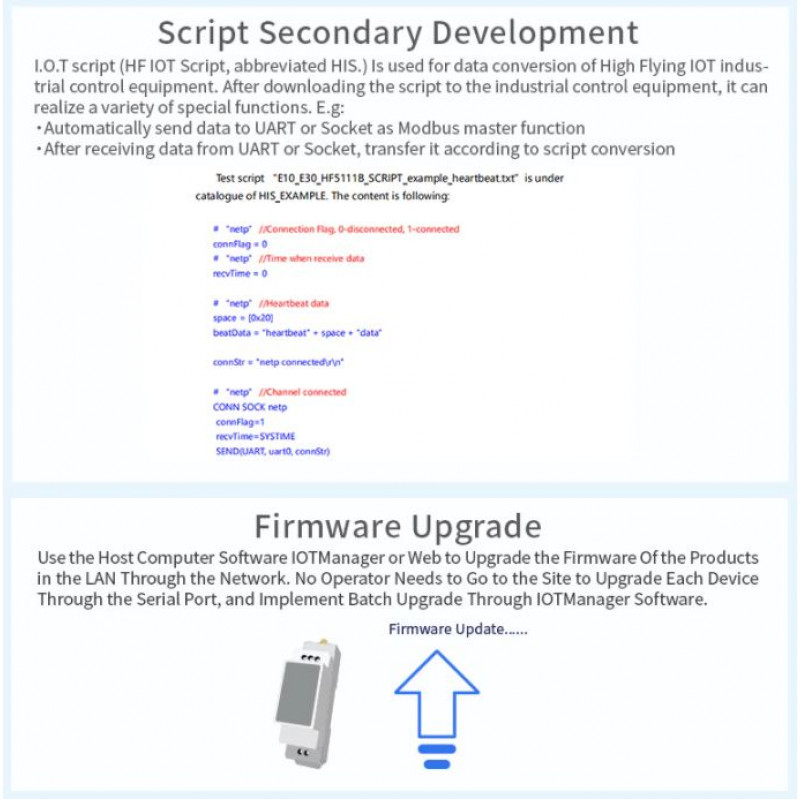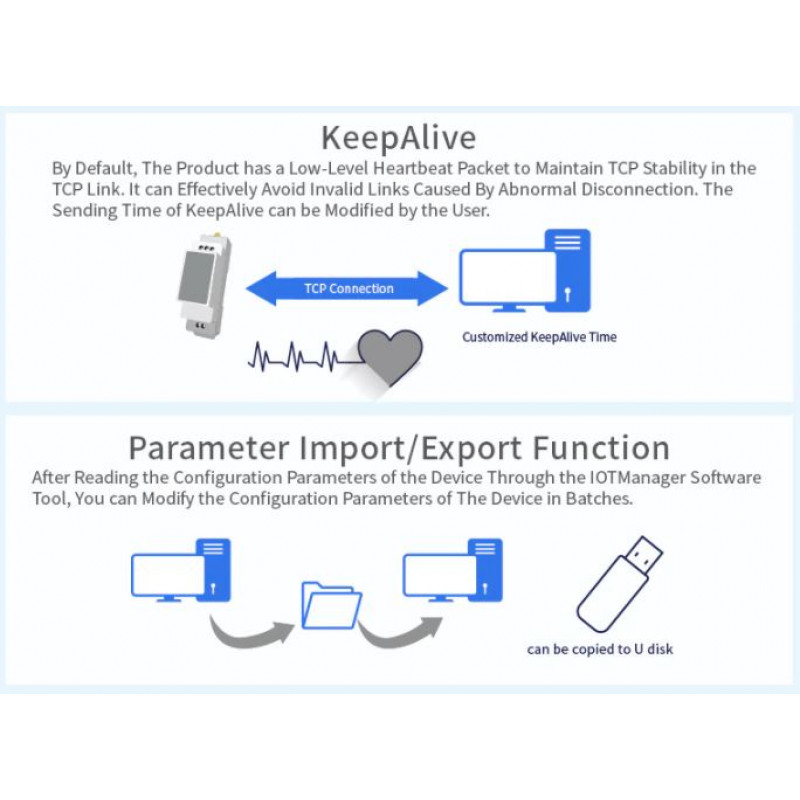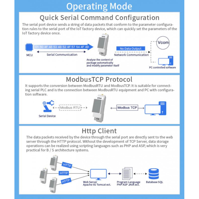 - Podpora za enostavno konfiguracijo prek spletnega vmesnika ali PC IOTService Tool