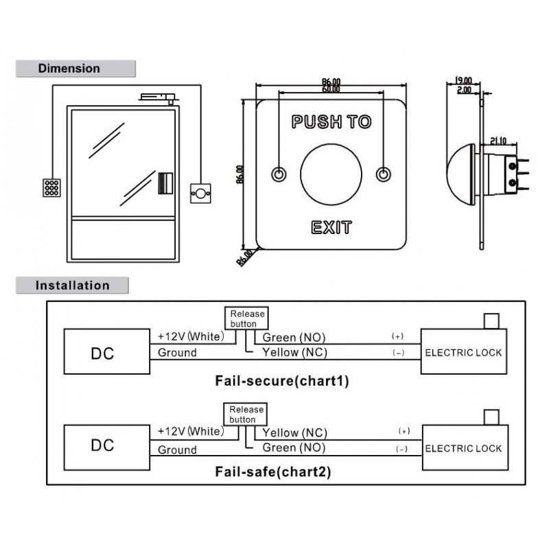 Preprost gumb za izhod z NO/NC/COM kontakti in okvirjem