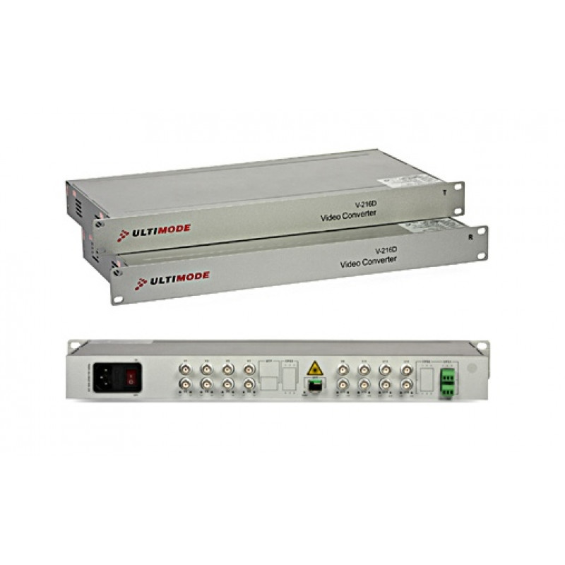 Ultimode kit video 19" singlemode 1U optični pretvornik V216D, optika 1xSC do 20km Tx/Rx 1310/1550nm, 16x BNC Video NTSC/PAL/SECAM