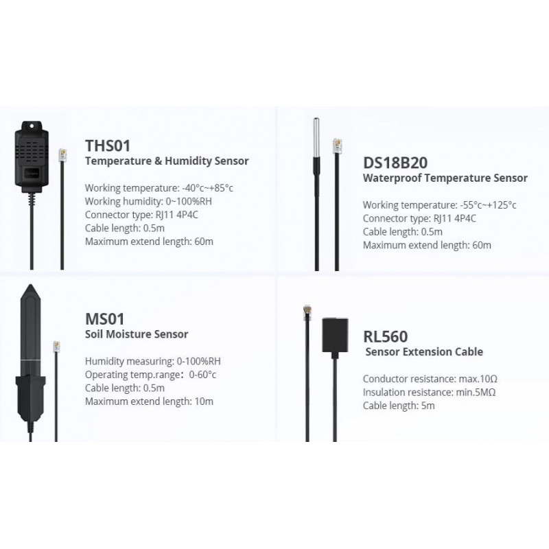 Izbira senzorja je ali vlažnost in zrak ali senzor tekočine, drugi senzorji so dobavljivi po naročilu z doplačilom.