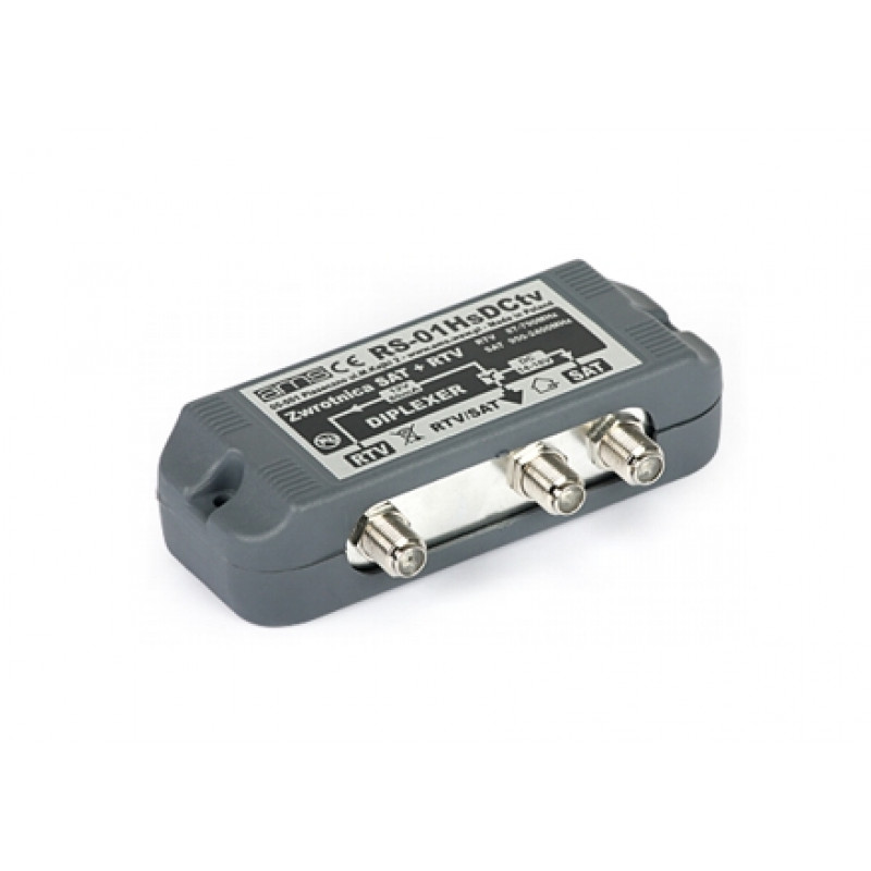 Združevalnik AMS signala Diplexer DVB-T/S oz RTV/SAT RS-01, podpora DC 12V, frekvenčno področje 87-790MHz in 950-2400MHz