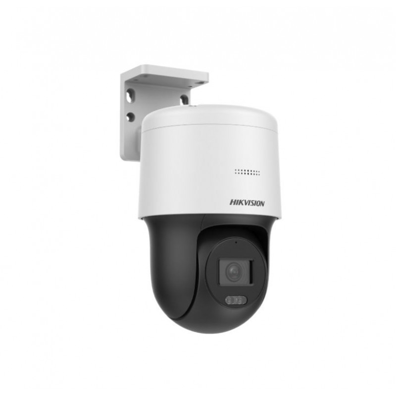 Vrtljiva IP kamera v mini PTZ izvedbi, ki ima senzor 4MP (2560 x 1440, 25 fps), fiksno lečo z goriščno razdaljo 2,8 mm, vidni kot 97°, Dark-Fighter digitalni WDR za kompenzacijo osvetlitve ozadja in vidno bela svetloba ali razdalja IR osvetlitve 30m za zagotavljanje odlične slike podnevi in ponoči. Kamera ima režo za kartico microSD do 256 GB ter zvočni mikrofon in zvočnik. Kamera se lahko napaja preko 12V DC adapterja ali PoE adapterja. Največja poraba kamere je 10,8W vključno z osvetlitvijo ozadja.