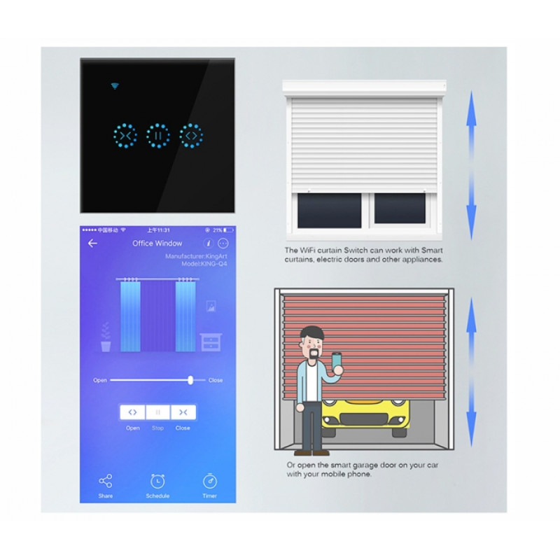 Olajšajte si vsakodnevna opravila in jih enostavno avtomatizirajte ter krmilite daljavo ali nastavljive funkcije. Stikalo za zavese rolete žaluzije je enostavno za uporabo, izredna lepa izdelava in visokokakovosten material, ki omogočata dolgo življenjsko dobo.