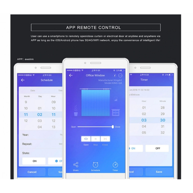 Podpora aplikacije android in iOS APP za daljinski upravljanje, predpriprava za regulacijo zaves, žaluzij, rolet in pogonskih vrat, stikalo je združljivo z Echo Google doma upravljalnikom in je prijazno ter enostavno za uporabnika.