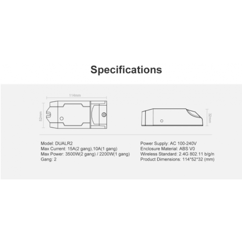 Sonoff Dual je 2-kanalno brezžično pametno stikalo WiFi, ki lahko poveže in upravlja dva gospodinjska aparata in elektronske naprave. To pomeni, da je v eden Sonoff Dual R2 z dvema osnovnima stikaloma oz. gre za dvopolno stikalo Sonoff. Sonoff Dual je podedoval prednosti Sonoff Basic switchrsquos, kot so enostavna namestitev in upravljanje, hiter dostop do WiFi, daljinski upravljalnik APP.