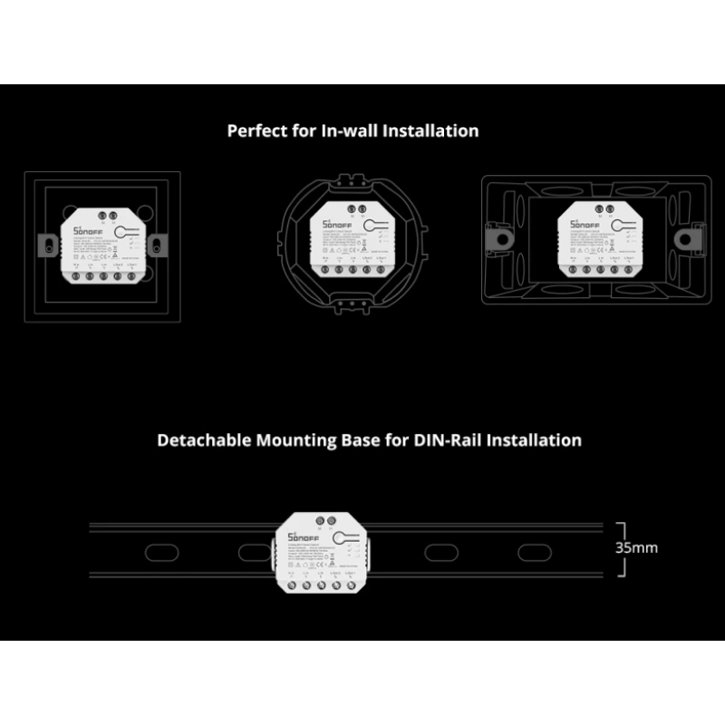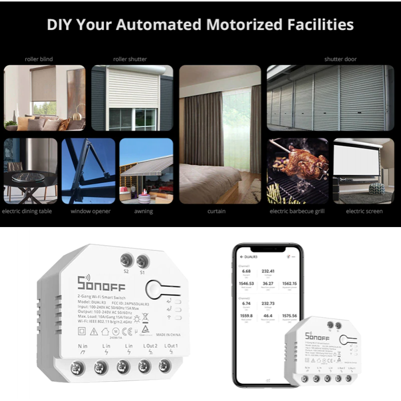 WiFi SonOff stikalo Dual R3 vaš dom popelje na naslednjo raven. DUALR3 je podometni modul Wi-Fi pametnega dvojnega releja, ki je nameščen za katerim koli standardnim stikalom, da ga prenese v pametno stikalo za brezžično daljinsko upravljanje z mobilnimi napravami ali glasovnim ukazom. Poenotenje vaših gospodinjskih aparatov v integrirano brezžično omrežje, da med seboj komunicirajo, kar vam je priročno za upravljanje in nadzor, vključno z lučmi, gospodinjskimi aparati in motoriziranimi napravami, kot so rolete, okenska senčila, žaluzije, vrata in druge pogone.