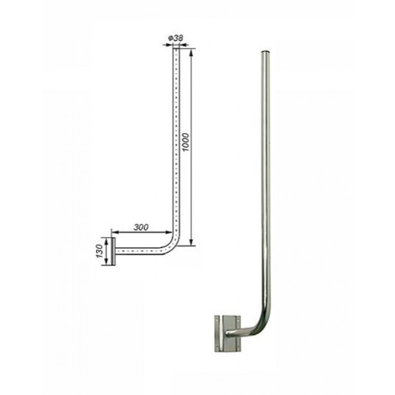 Zidni antenski nosilec L100-110 premer droga ¤38 pocinkani izvedbi, distanca 25-30cm, višina 100-110cm, montaža z štirimi vijaki
