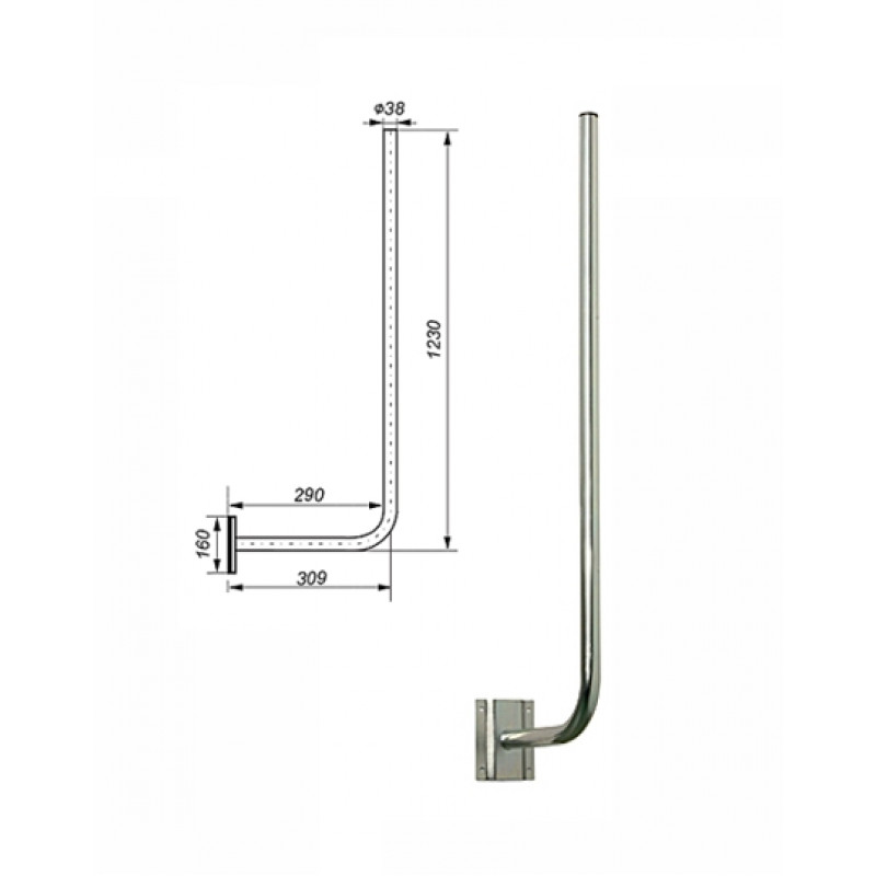 Zidni antenski nosilec L120 premer droga ¤38 pocinkani izvedbi, distanca 30-35cm, višina 120-125cm, montaža z štirimi vijaki